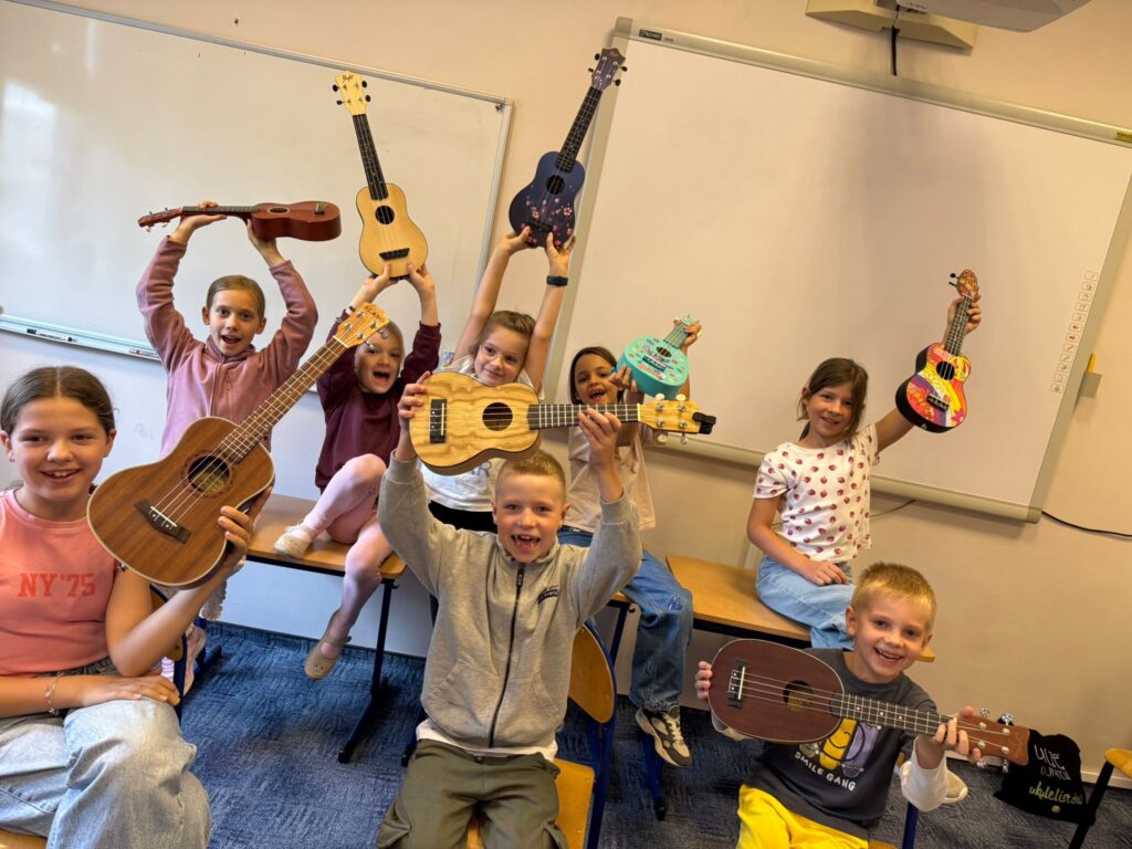 Zajęcia z nauki gry na ukulele to propozycja dla uczniów, którzy chcą rozwijać swoje zainteresowania muzyczne w radosnej i twórczej atmosferze. Ukulele to instrument łatwy w nauce, o przyjemnym brzmieniu, który doskonale sprawdza się w pracy z dziećmi.